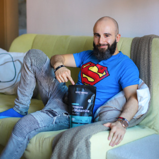 „L-глутаминът е аминокиселина, която използвам, за да се грижа за регенерацията след тренировка.“